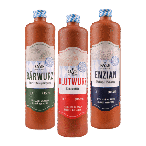 - 40% vol (Bärwurz), 50% vol (Blutwurz), 38% vol (Enzian)