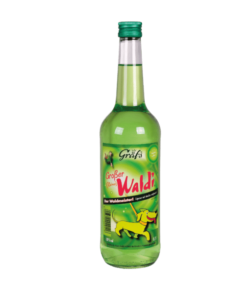 Gräf’s Großer Waldi – Der Waldmeister! – jung und spritzig – das ist frischer Waldmeister verfeinert mit mildem und absolut reinem Wodka. Prickelt wie Brause. Eiskalt genießen.