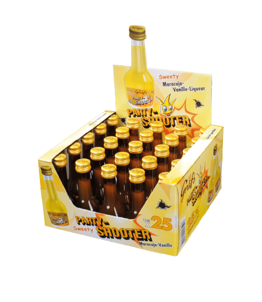 Gräf’s Party-Shooter Sweety– echt fruchtiges Erlebnis auf Basis von Passionsfruchtsaft (14% Saftanteil im Endprodukt) verfeinert mit Vanille. Eine unwiderstehlich exotische Kombination.